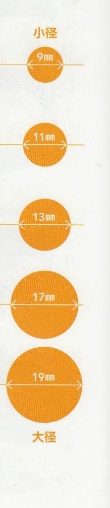 从径数上分:9mm、11mm、13mm、17mm、19mm (主流径数)