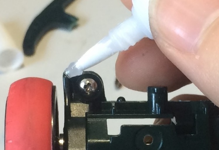 拧紧螺丝并牢牢固定。如果固定松动,胶水会进入部件与底盘之间。在这种情况下,左右高度会不平齐,当然装出的凤尾也会有问题。